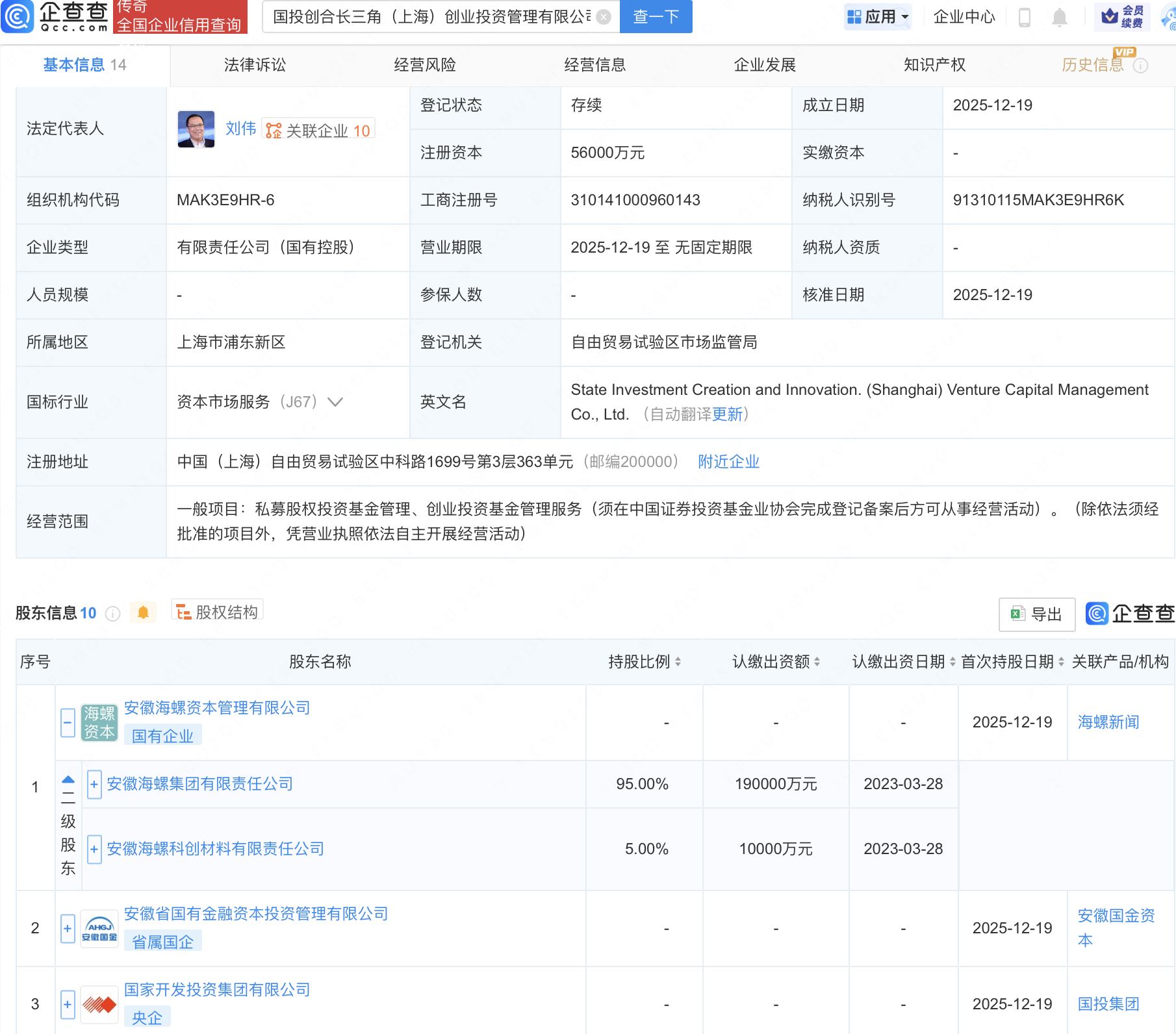 近日,国投创合长三角(上海)创业投资管理有限公司成立,注册资本5.6亿元信达配资,经营范围包含:私募股权投资基金管理、创业投资基金管理服务。企查查股权穿透显示,该公司由安徽海螺集团有限责任公司旗下安徽海螺资本管理有限公司、国家开发投资集团有限公司等共同持股。